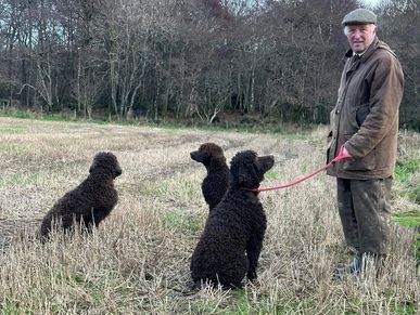 I have been involved with dogs for most of my life but around 14 years ago my wife and I fell in love with the Irish Water Spaniels and were advised to get in touch with David & Ursula Wilcox, which we did. We got our foundation bitch from them in 2011, Fendrake Isla at Islacairn. As a result of Isla, we now have another 9 Irishers, 7 home bred and 2 that we have brought in from reputable breeders. I am actively out picking up on shoots every season with several of our IWS and have been a member of the SIWSC since the beginning of our IWS journey. My wife and I have plenty of experience with the breed and do our best to promote it at all times here in N.E. Scotland.